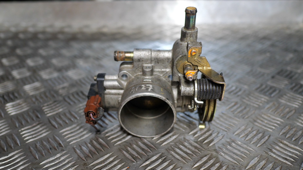 Дроссельная заслонка двигателя Nissan SR20DE механическая, оснащена датчиком положения и регулятором холостого хода. Датчик положения заслонки как правило никаких вопросов не вызывает, но его стоит проверить, если в какой-то момент при разгоне наблюдаются кратоквременные провалы мощности. Вероятно, на каком-то участке стерлись контактные дорожки. Показания ДПДЗ проверяются мультиметром – сигнальное напряжение должно расти плавно и без провалов.