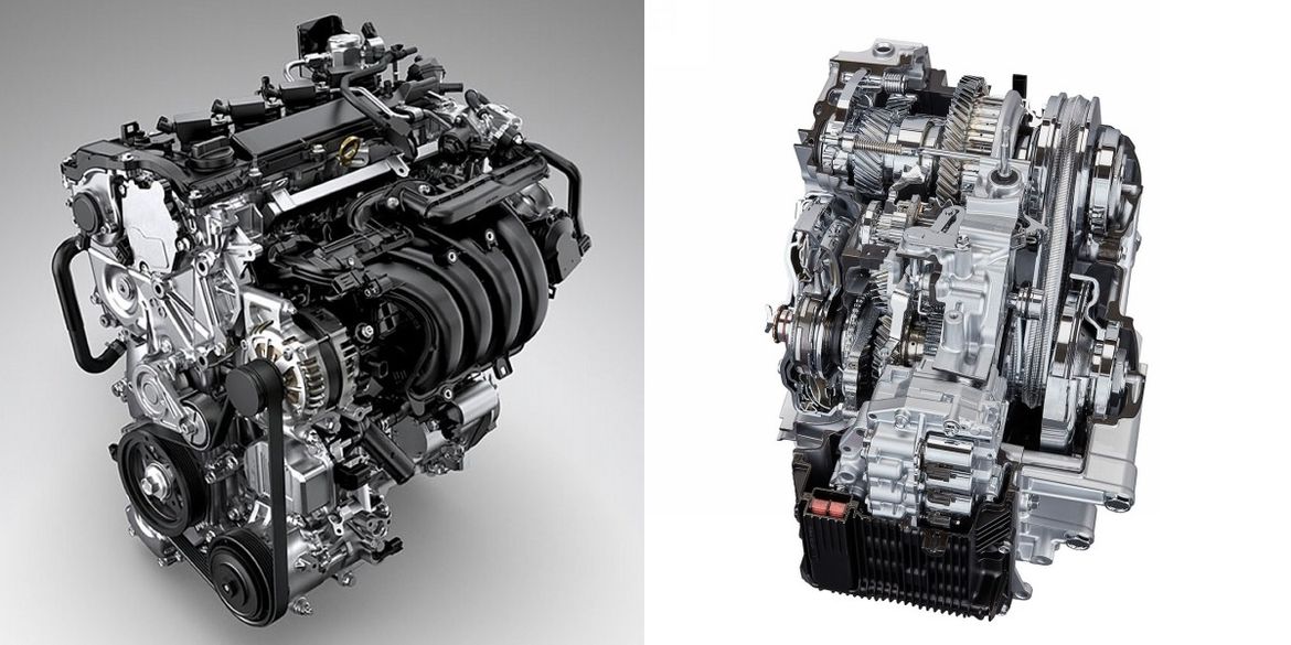 Новый двигатель 2.0 Dynamic Force (на фото слева ниже) развивает максимальный крутящий момент 206 Нм, что на 14 Нм больше, чем 2,0-литровый мотор в прежней версии, и разгоняет автомобиль с места до 100 км/ч на 1,5 секунды быстрее; расход топлива при этом уменьшился, по данным производителя, на 1,1 л на 100 км в смешанном цикле. Двигатель агрегатируется с вариатором Direct Shift CVT, имеющим механические первую и заднюю передачи.
