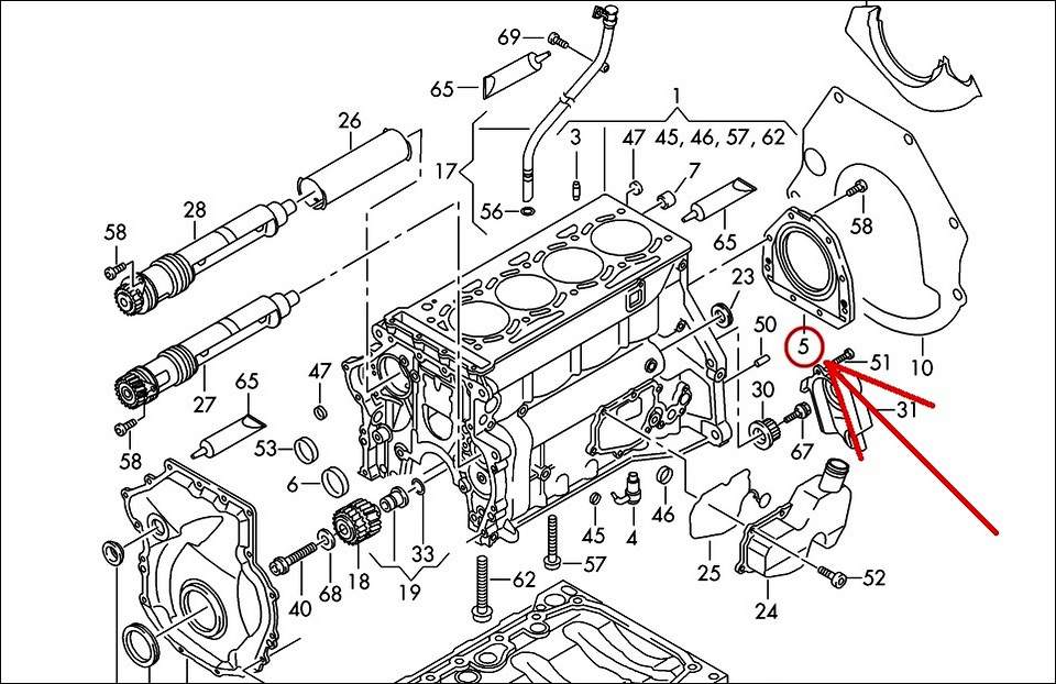 Он крепится через тонкий уплотнитель к корпусу мотора. Встречается на моделях А4, Q7 и других. В конструкции трапециевидного фланца предусмотрен сальник, который приклеен с завода. Когда резина начинает отходить от металла, возникают утечки.