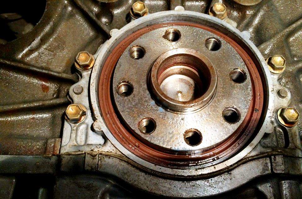 Коленвал и распредвал имеют выходы наружу для присоединения шкивов и синхронизации крутящего момента. Герметичность выводов достигается резиновыми сальниками. Поскольку шейки валов крутятся на большой скорости, трение, перегрев и время приводят к износу сальников. Их обязательно стоит проверить. При поперечном расположении двигателя потеки будут с правой стороны моторного отсека (если смотреть по ходу движения авто). При продольном — спереди, сразу за радиатором.