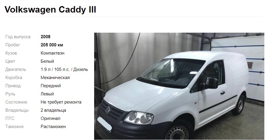 Чтобы купить беспроблемный экземпляр, рекомендуем тщательно осматривать авто и проверять историю эксплуатации. На доске объявлений мы нашли дизельный «Кадди» 2008 г. в. с пробегом 205 тыс. км: