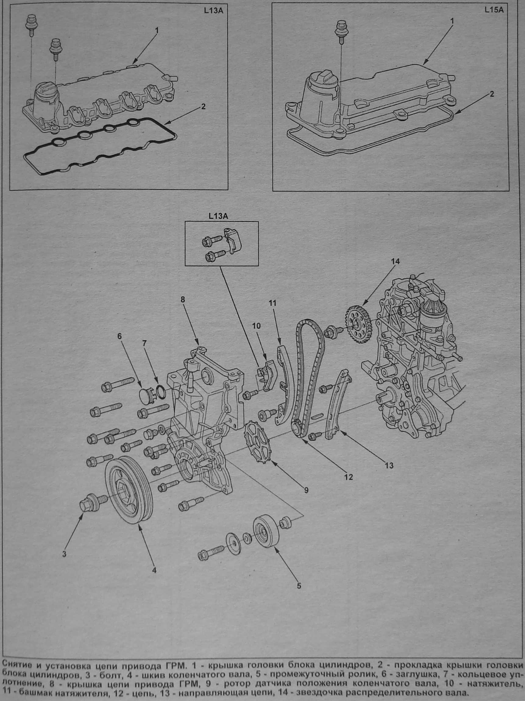 15. Снимите генератор, ротор датчика частоты вращения коленчатого вала и крышку цепи привода ГРМ.