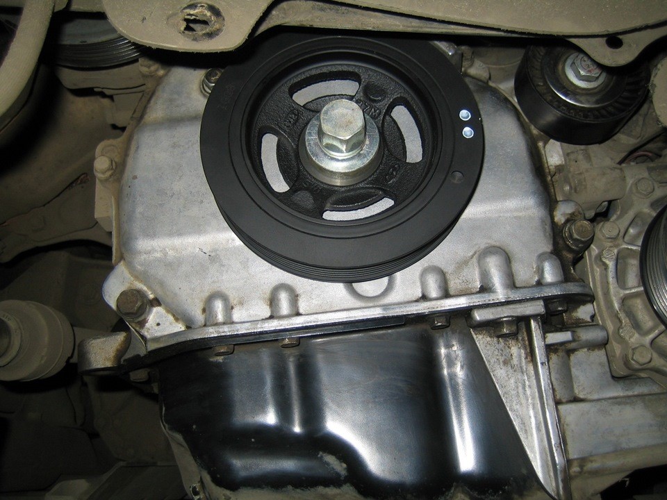 Затянуть болт крепление шкива с большим усилием. Рекомендуемое порядка 210Нм.