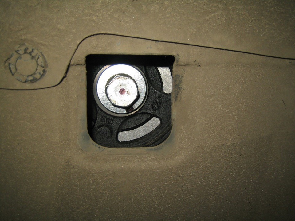 - Откручиваем болт, удерживающий крышку картера движка. и снимаем ее.