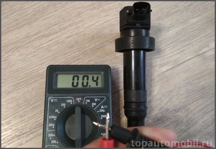 Сопротивление должно быть в пределах от 0,2 Ома до 3 Ом (в зависимости от модели катушки и точности показаний мыльтиматра). В любом случае контакты «+» и «К» должны прозваниваться.