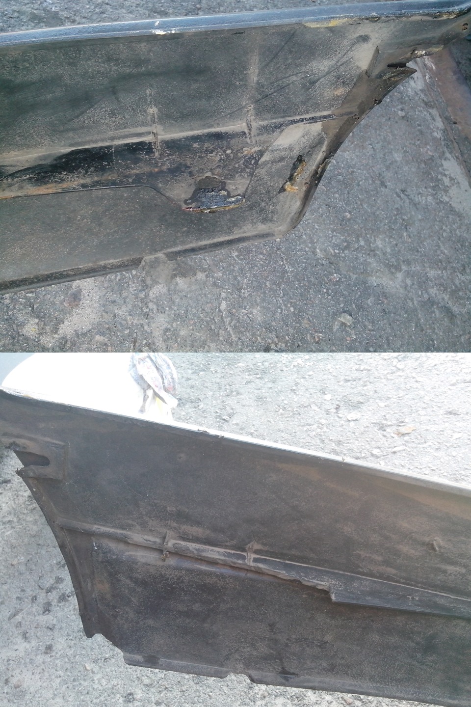 Волну на бампере выравнивал с помощью двух металлических пластин и струбцин. Прикладываем две металлические пластины к бамперу, одну с внутренней стороны, другую с внешней. Все это стягиваем струбцинами, струбцины закручиваем начиная от центра вмятины и начинаем греть промышленным феном, пока не запахнет паленой пластмассой. Как только запахнет, знайте бампер готов!))) Обливаем его холодной водой и даем полностью остыть.