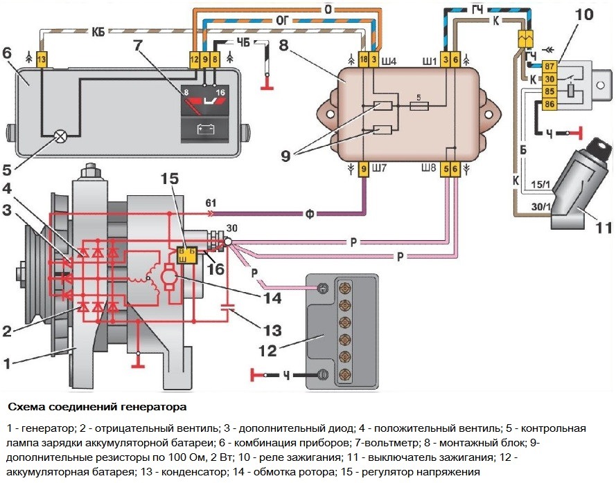Характеристики:Габариты: на габариты идут три предохранителя (7, 9 и 10), и питаются они от Ш4/4, Ш4/13 и Ш3/13 через кнопку и переключатель поворотов, и сделано это для функции “парковочный свет”: вытащив ключ можно переключателем поворотов включить левые или правые габариты, при этом подсветка номера и приборов не включались. А кнопка включала все габариты и подсветку.После 1988 года эту функцию убрали, и все эти три контакта соединялись одним проводом, который подключался сразу к кнопке габаритов.