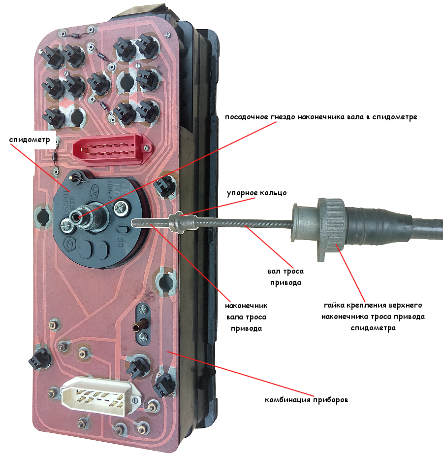 - на механических старых спидометрах нередко выходит из строя крепление тросика, идущего на панель от коробки передач.