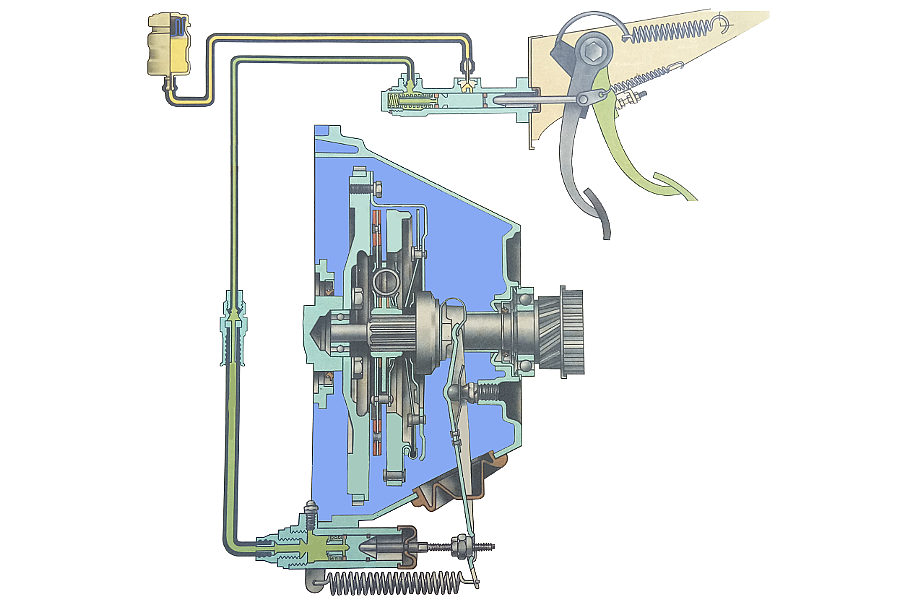Перед регулировкой гидропривода в первую очередь необходимо убедиться в отсутствии воздуха в системе. Это проверяется следующим образом: в том случае, если воздуха в системе нет, при нажатии на педаль сцепления она не должна быть мягкой, а после того как давление ноги с педали убирается, она должна вернуться в изначальную позицию.