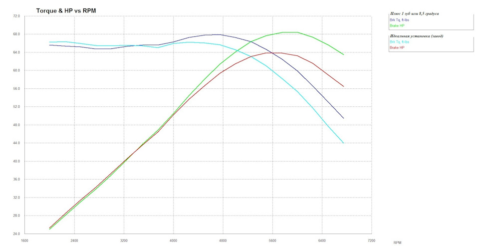 2) — 1 зуб или — 8,5 градуса.Момент 89,6 Нм @ 2250 об/минМощность 59,1 лс @ 5500 об/мин