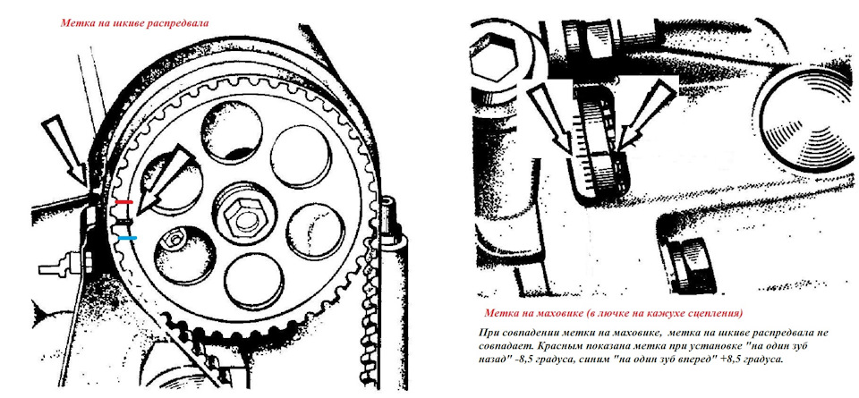 Многие сталкивались с проблемой при замене ремня ГРМ с невозможности выставить шкив распредвала строго по меткам, при условии что метки на маховике либо шкиве коленвала совпадают. Берем случай со стандартным шкивом распредвала не регулируемым.