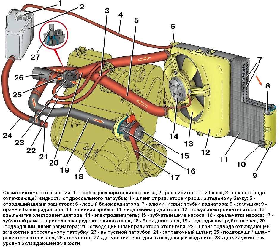 Схема системы охлаждения двигателя 2108, 21081, 21083
