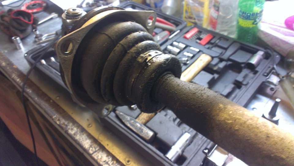 Пыльник пришел и я отправился в гараж весь такой давольный и радостный что, типа : «Ща все починю и будет у меня вай какой хорощий лёган!» Немного попотев, привод был извлечен и отправлен на операционный стол, т.е. в тиски.